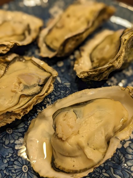 昨日はみんと家が送ってくれた大きな牡蠣で乾杯!!