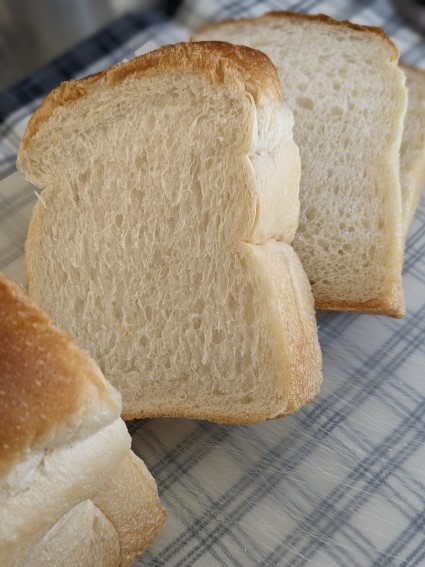 食パンはフワフワでもっちり、外側はパリっとしている。