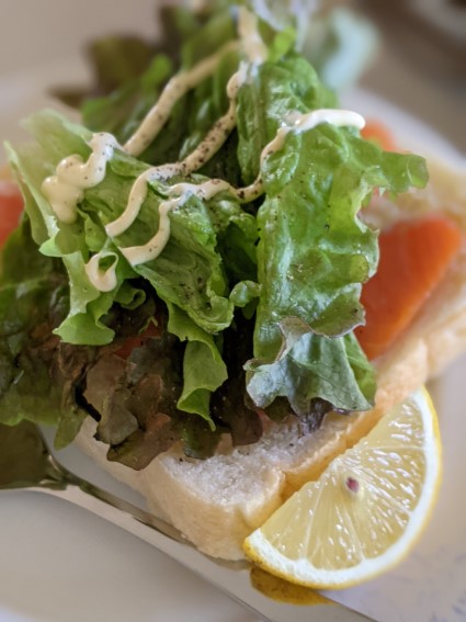 スモークサーモンとサラダのオープンサンドと・・・
