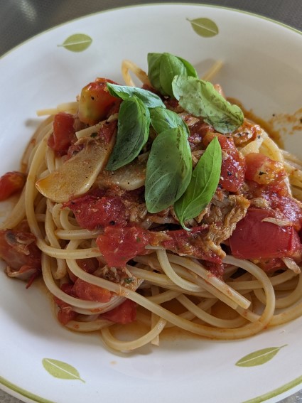 いただきものでフレッシュトマトとツナのパスタを作った。