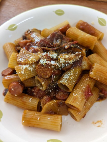 リガトーニはやっぱりボロネーゼとかソースがからむほうが美味しい。