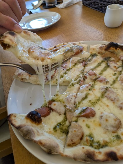 今回は長いもとソーセージのピザ ガーリックがとてもきいていて