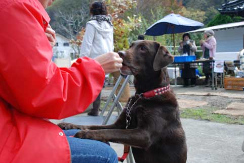 ちょっと離れた駐車場から茶ラブを連れた二人連れが歩いてくるので、