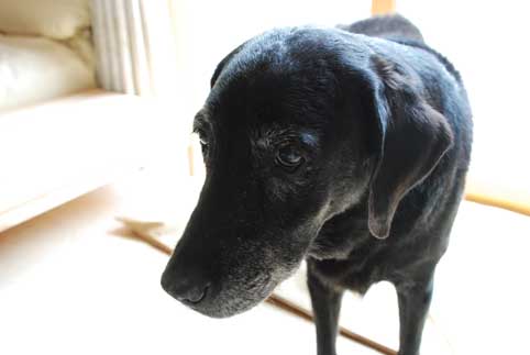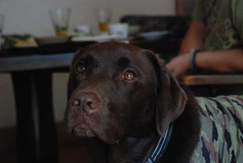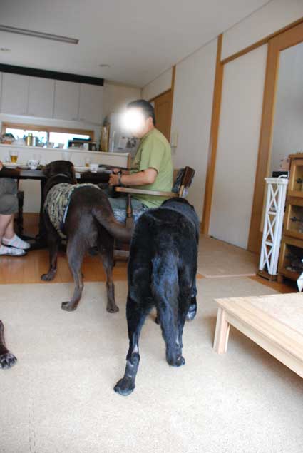 ティンが美味しいものが落ちてこないか見張ってる風景と