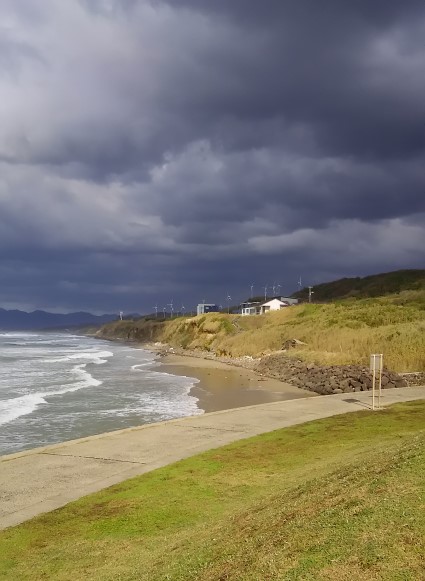 どんよりと重く曇った空と濃い海、日本海独特の冬の風景だ。