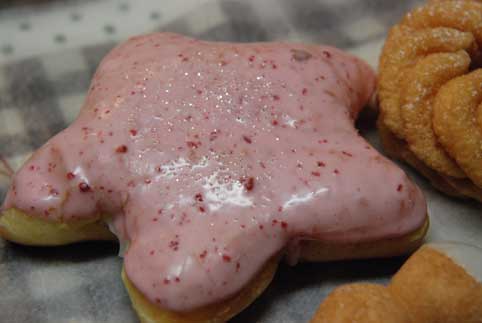 このピンク色のドーナツの中にはカルピスのクリームがたっぷり入っていて( ̄▽ ̄)b グッ!