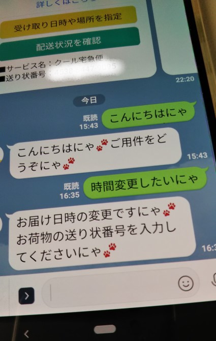 荷物のお届けをラインでお知らせしてくれ、