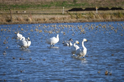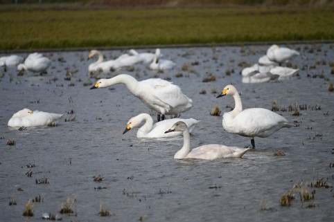 春になると飛び立つコハクチョウの中に