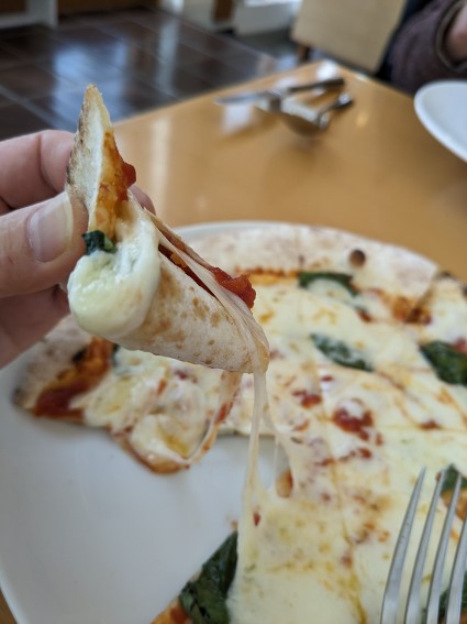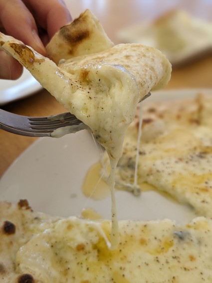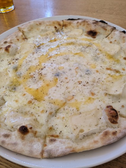 4種類のチーズのピザが使ってあって、奥深い味わいのあるピザだ。
