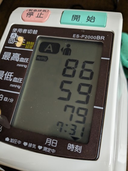 今朝の血圧はこれ。そんなに高くないようなっていうか低いような・・