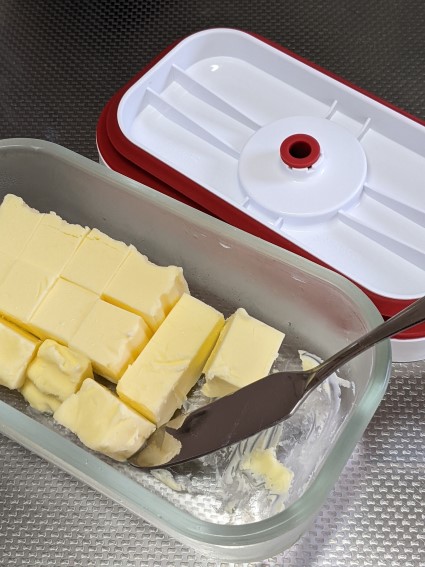カットしたバターが酸化しないよう真空コンテナはありがたいんだよね。