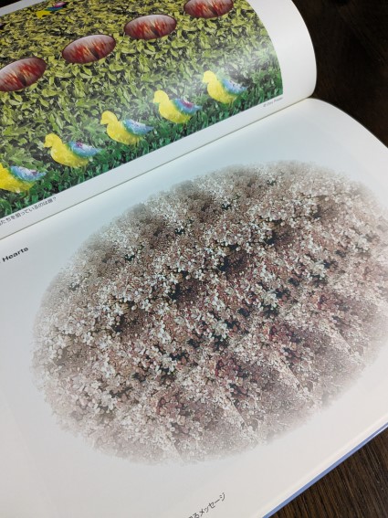 上の花の絵にはハートのマークが2つ重なって浮き出ている。