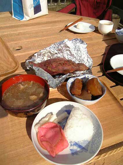 おにぎりが美味しくておかわり~~。みそ田楽もおかわり~~。もちろん焼き芋も♪♪