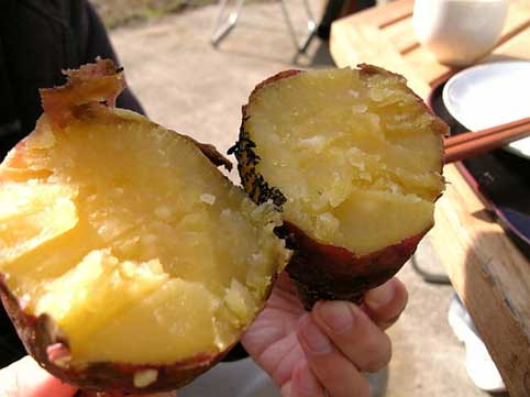 庭先でじっくりと焼かれたやきいも。ほくほくしててとても美味しかった。