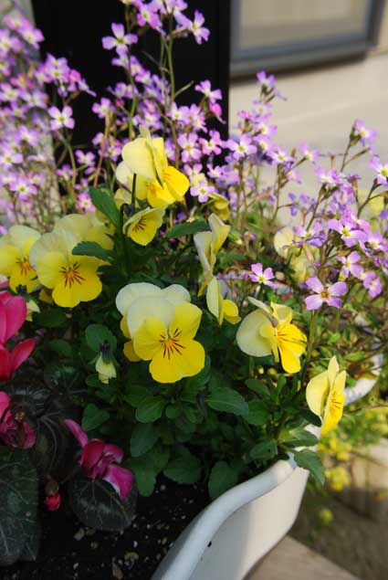 買った時のポットのまま置いてた花を植えかえたりした。