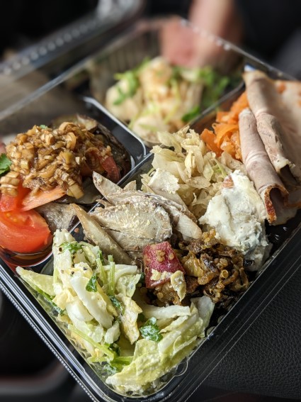 ごぼうやたくさんのサラダで食物繊維もあったり、