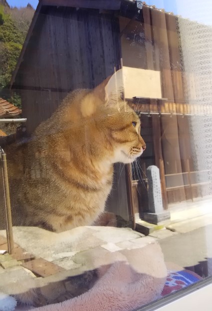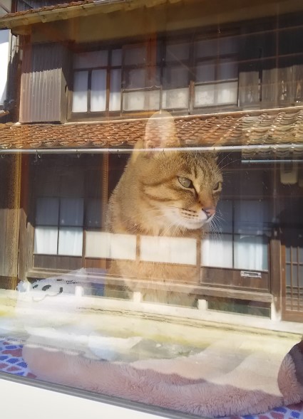 町家の窓辺に陽だまりでまったりしている猫ちゃん発見!!