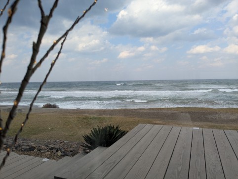 haretelのテラスから海を見た。