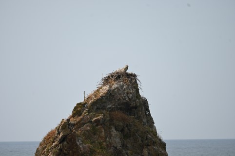巣から国道を挟んで山側の高い木に1羽のミサゴがしきりに鳴いている。