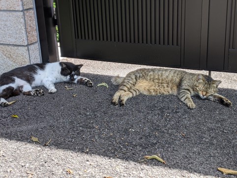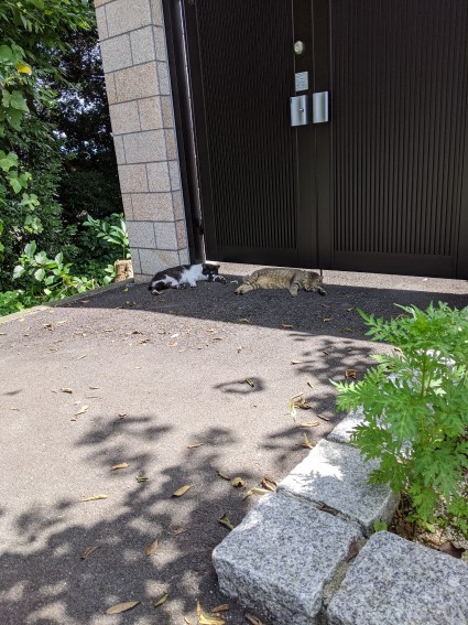 旧陸軍墓地のエントランスを出ると、ネコちゃんがうだっている(笑)
