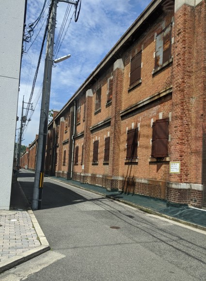遠くにレンガ造りの旧陸軍の被服支廠がある。