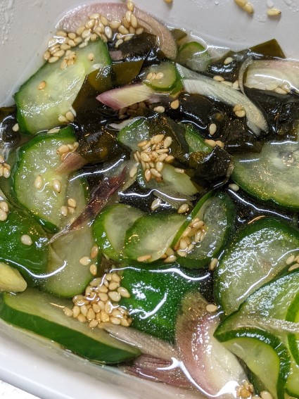 それからキュウリとわかめ、ミョウガの酢の物
