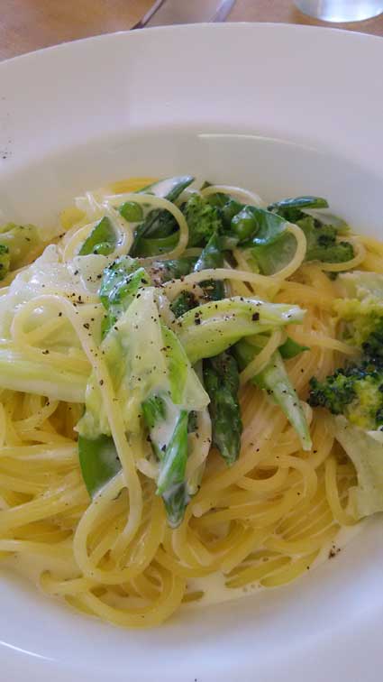 夫はずっと食べたかったらしい旬野菜のクリームチーズパスタ