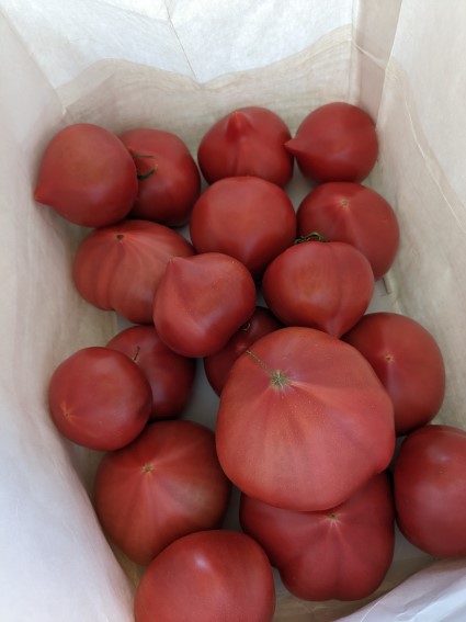 枝で完熟されて収穫されたばかりのトマトのなんて美味しいこと。