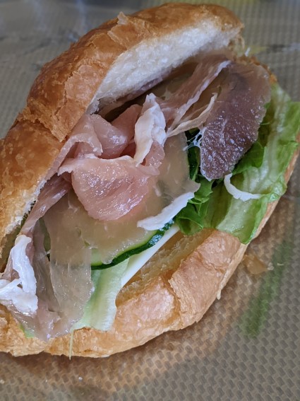 朝、どこかへ行こうってことになり、クロワッサンサンドを作った。