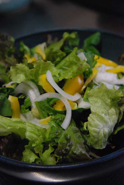 サニーレタスとルッコラ、玉ねぎとパプリカのスライスのサラダ