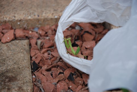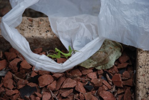風に吹かれてゆらゆらするレジ袋に一生懸命しがみついている。