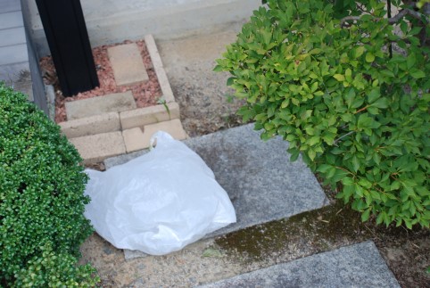 台風のせいで風が強く、どこからかレジ袋が飛んできている。