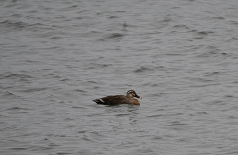 ちょっと離れたところで浮かんでいるカモを見て、あっと思う。
