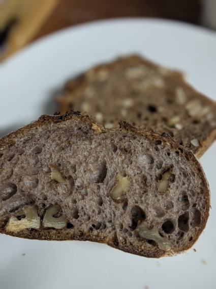 今朝はクルミのパンとヒマワリの種のパンに浸けて食べてみる。