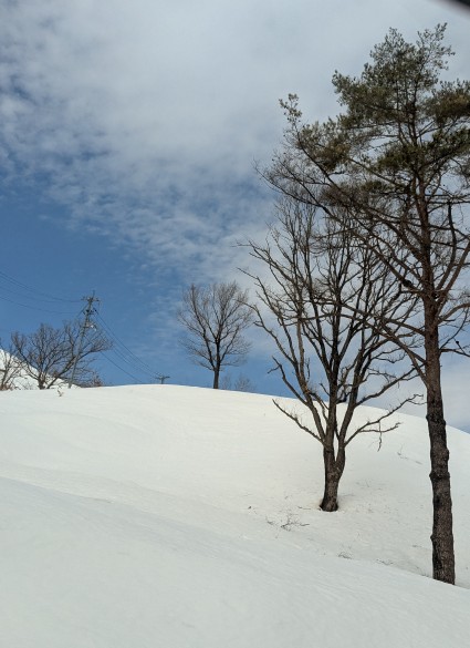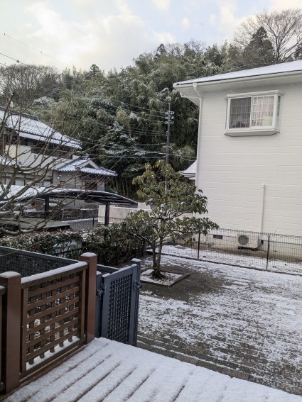 昨晩は雪が舞っていたから積もるかと思っていたけどまあまあだった。