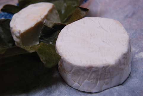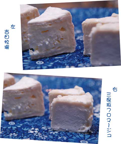 画像左の葉に包まれたのが「三良坂フロマージュ」 右が「吉田牧場」