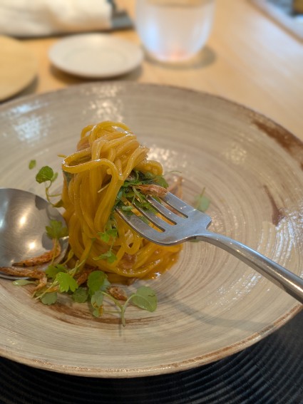 自家製の細くて平たいパスタってどーしてこう美味しいんだろう。
