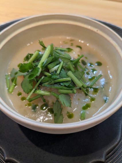 田芹の香りがまた憎いほどいい具合に料理を引き立てている。