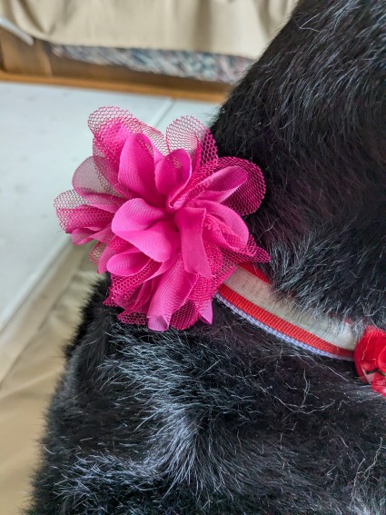 おじさんはたくさんの花をカラーに付けてくれた。