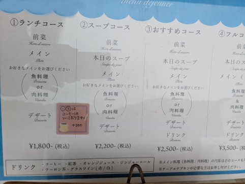 メニューは基本のランチコースにスープやドリンクをプラスしていくもので