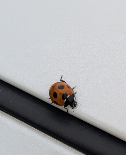 駐車場で私たちを待っていた車には幸運を呼ぶ虫のナナホシテントウ