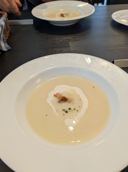 この前はサツマイモのポタージュだったけど今日はジャガイモ
