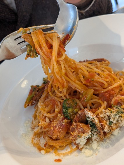 ブロッコリートチョリソーのトマトパスタ