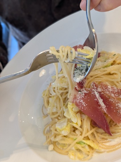 白菜と生ハムの柚子風味のクリームパスタ