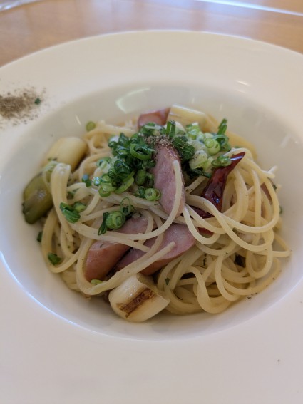 ソーセージと白ネギのペペロンチーノ