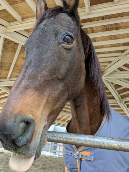 彼は現役馬で、まだまだ若くてやんちゃだそうだ。