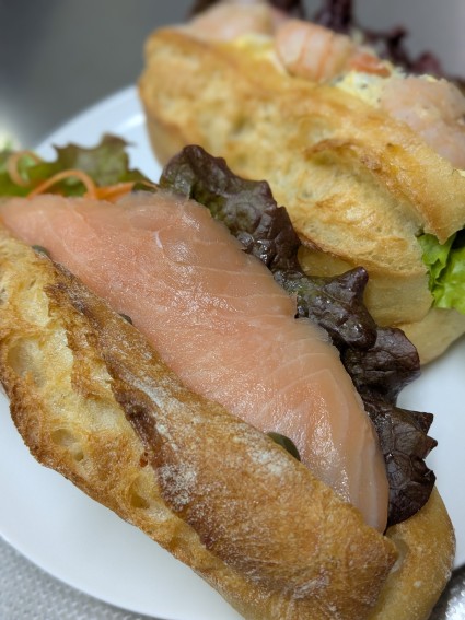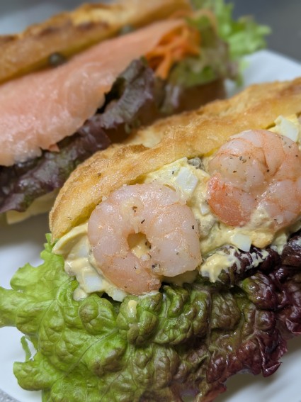 ここはサンドイッチも美味しくて、サーモンと海老を買う。