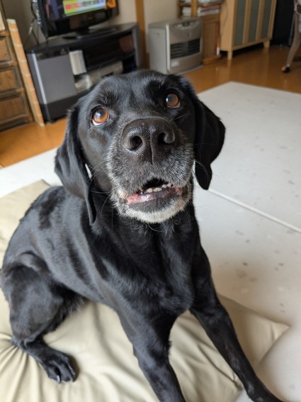 休日のちょっと遅めの朝、わさびはテンション高くて