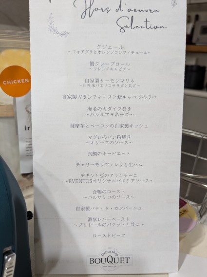 クリスマスイヴ、お願いしていたオードブルのお品書き(笑)
