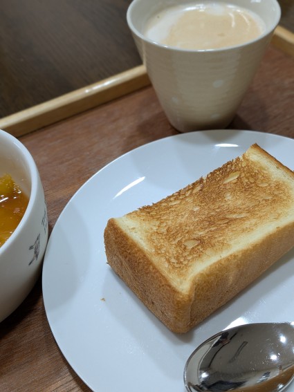 休日の朝、それを厚切りにしてからさらに半分に切ってトーストし、